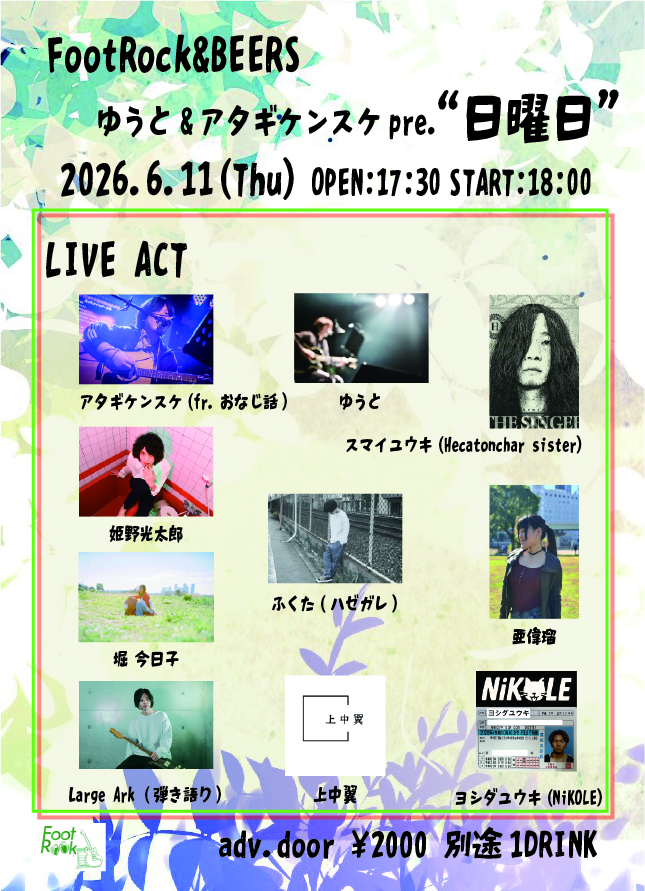 アタギケンスケ(fr.おなじ話) ゆうと 姫野幸太郎 スマイユウキ(Hecatonchar sister) ふくた(ハゼガレ) 亜偉瑠 堀 今日花 Large Ark(弾き語り) 上中翼 ヨシダユウキ(NiKOLE)