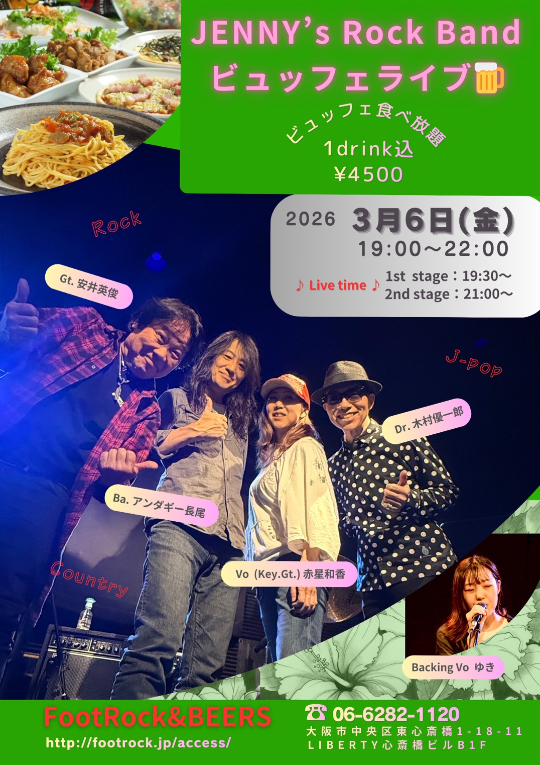Vo.(Key.Gt.)赤星和香 Gt.安井英俊 Ba.アンダギー長尾 Dr.木村優一郎 Backing Vo.ゆき