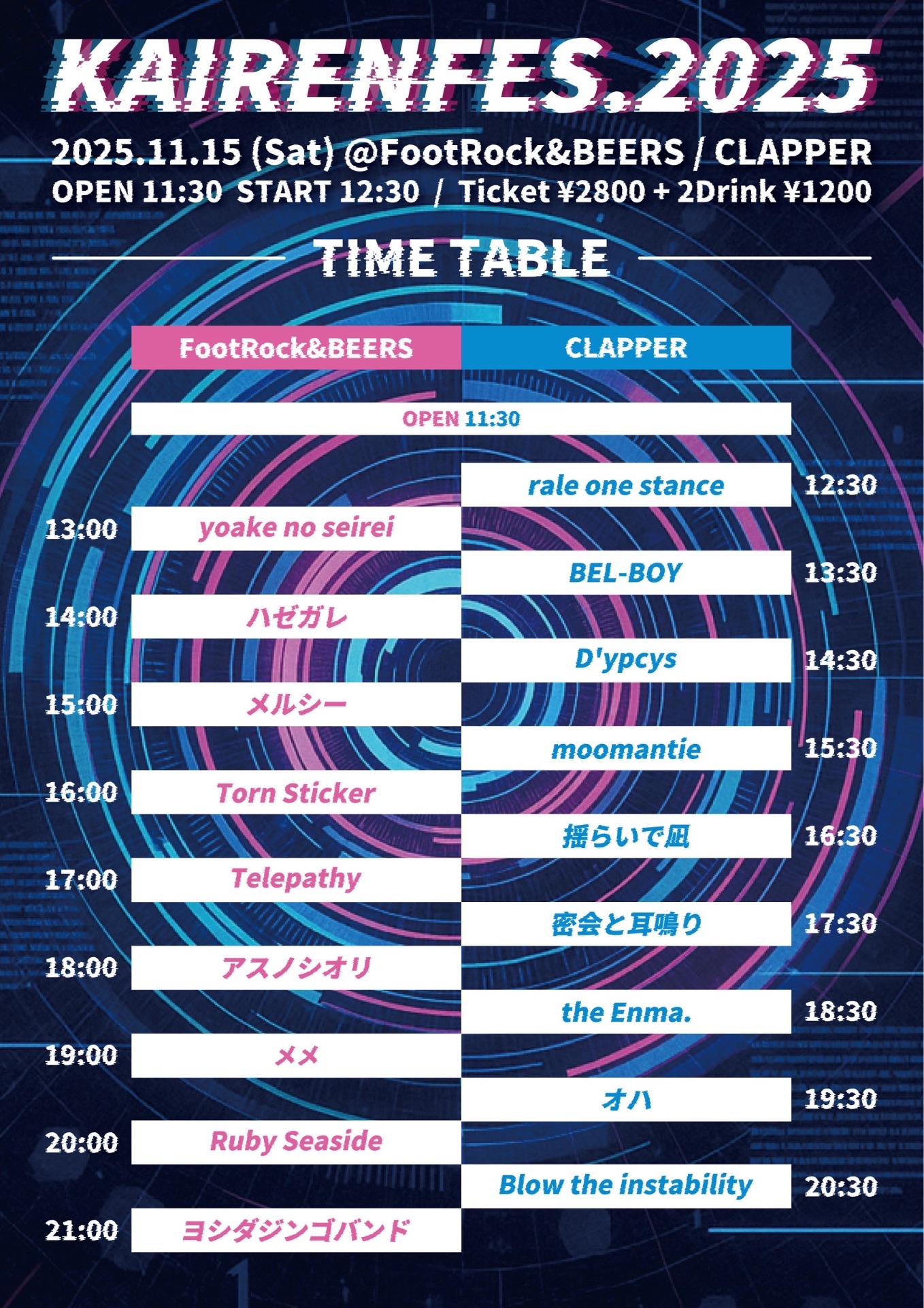 ¥2800+2d(¥1200) ※CLAPPER FootRock&BEERS各会場一枚ずつ